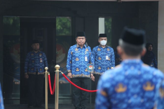 GERBANGPATRIOT.COM – Jakarta, Sekretaris Jenderal (Sekjen) Kementerian Dalam Negeri (Kemendagri) Suhajar Diantoro memimpin Upacara Bendera Peringatan Hari Pendidikan Nasional (Hardiknas) di lingkup Kemendagri. Upacara tersebut berlangsung di Halaman Plaza Gedung A Kantor Pusat Kemendagri, Selasa (2/5/2023). Suhajar maupun seluruh peserta upacara kompak mengenakan seragam Korpri.