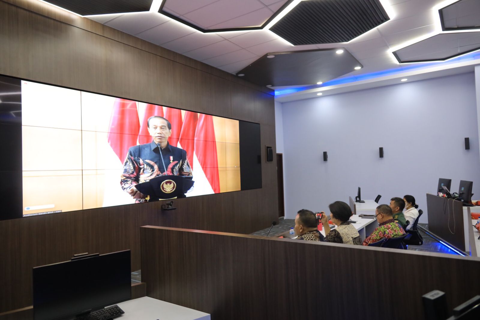 Tri beserta jajaran Pemerintah Kota Bekasi mengikuti zoom di Command Center Kota Bekasi.