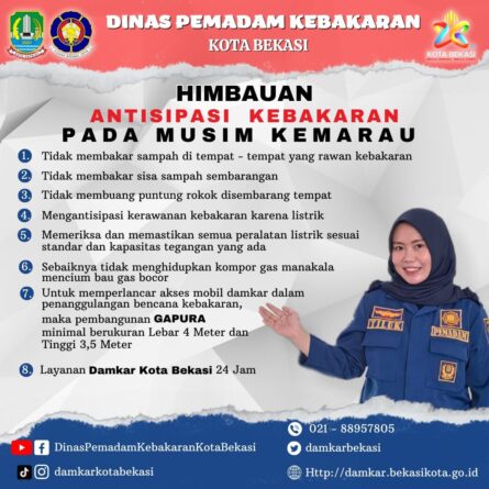 GERBANGPATRIOT.COM – Kota Bekasi, Dinas Pemadam Kebakaran (Damkar) Kota Bekasi mengimbau masyarakat untuk meningkatkan kewaspadaan terhadap ancaman kebakaran selama musim kemarau.