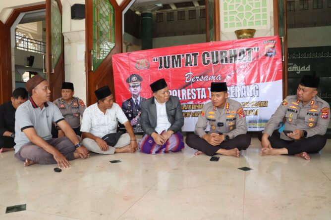 GERBANGPATRIOT.COM – Tangerang, Kapolresta Tangerang Kombes Pol Sigit Dany Setiyono melaksanakan kegiatan Jumat Curhat di Mesjid Al-Amjad, Komplek Puspemkab Tangerang, (25/8/2023).