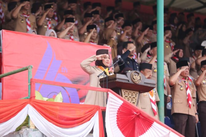 GERBANGPATRIOT.COM – Lampung Utara, Kwartir Daerah (Kwarda) Gerakan Pramuka Lampung menggelar Apel Besar Hari Pramuka ke- 62 Tingkat Provinsi Lampung Tahun 2023 di Stadion Sukung Kotabumi, Selasa (29/8/2023).