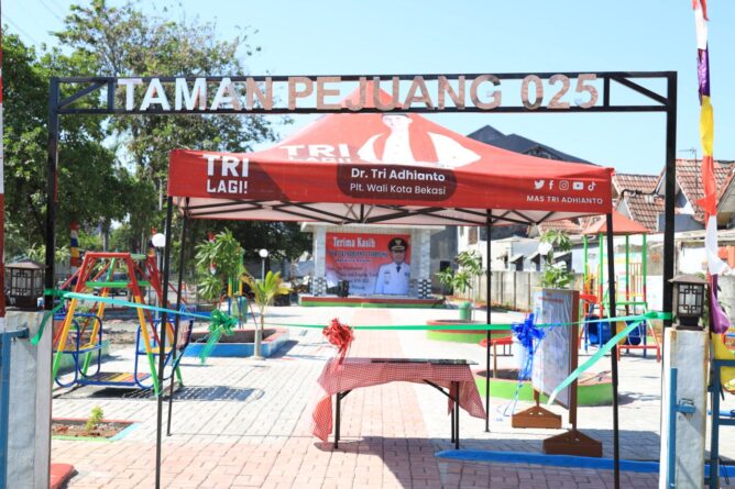 GERBANGPATRIOT.COM – Kota Bekasi, Wali Kota Bekasi, Dr. Tri Adhianto meresmikan dua taman sekaligus yaitu Taman Merdeka RW 12 Kelurahan Kalibaru dan Taman Pejuang RW 25 Kelurahan Pejuang.