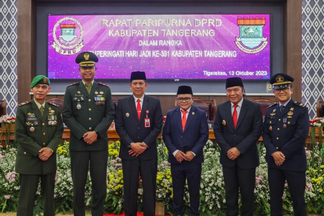 GERBANGPATRIOT.COM – Banten, Penjabat (Pj) Gubernur Banten Al Muktabar mengajak seluruh jajaran Pemerintah Kabupaten (Pemkab) serta masyarakat Tangerang untuk bersama-sama menjaga stabilitas daerah di tengah kondisi geopolitik dunia yang tidak menentu. Hal itu diungkapkan Al Muktabar saat menghadiri Paripurna Istimewa Hari Jadi ke-391 Kabupaten Tangerang di Kantor DPRD Kabupaten Tangerang, Tigaraksa, Jumat (13/10/2023).