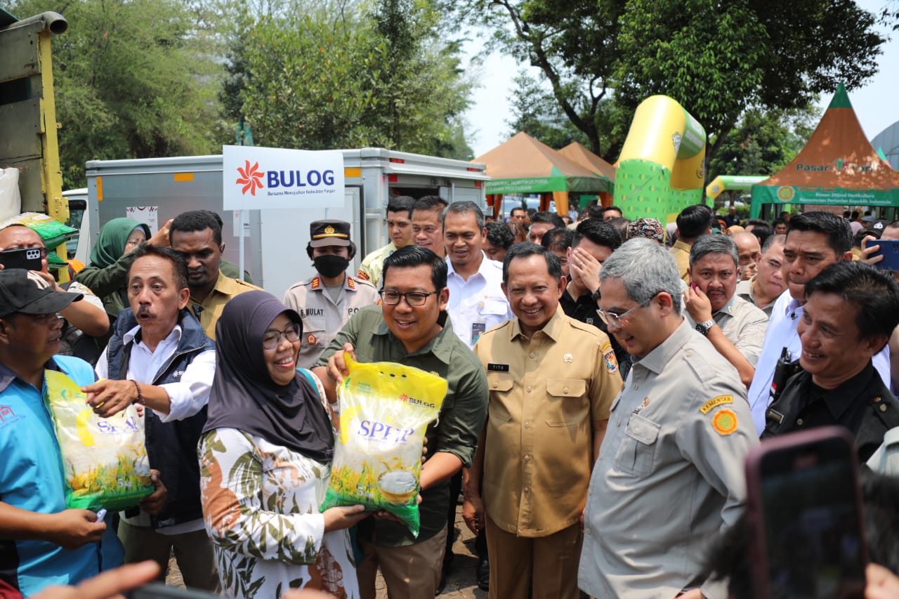 “Sehingga itu yang saya minta kepada rekan-rekan kepala daerah, berbagai upaya dari pemerintah pusat dilakukan untuk menjaga stok misalnya beras, baik melalui pendataan dalam negeri, meningkatkan produksi dalam negeri, menyerap dari dalam negeri dari petani, dan kemudian kalau cukup Alhamdulillah swasembada,” ujar Mendagri saat menghadiri Gerakan Pangan Murah (GPM) Serentak dalam rangka Hari Pangan Sedunia di Ruang Rapat Nusantara I, Kantor Badan Pangan Nasional (Bapanas), Jakarta, Senin (16/10/2023). Kegiatan tersebut diinisiasi Bapanas dan diikuti secara serentak oleh seluruh Pemda se-Indonesia.