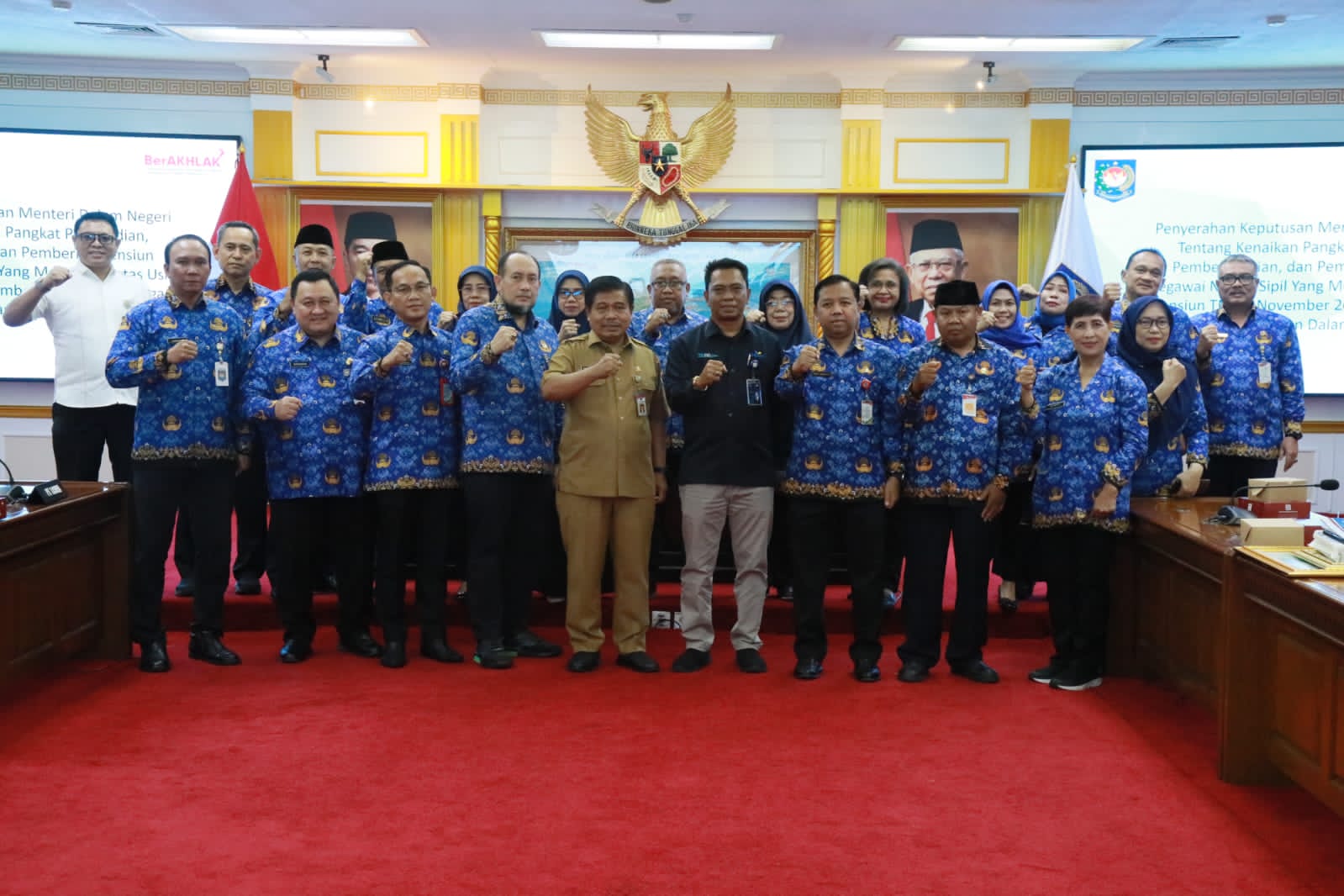 Demikian ditekankan Sekretaris Jenderal (Sekjen) Kementerian Dalam Negeri (Kemendagri) Suhajar Diantoro pada acara Penyerahan Keputusan Menteri Dalam Negeri tentang Kenaikan Pangkat Pengabdian, Pemberhentian, dan Pemberian Pensiun Pegawai Negeri Sipil (PNS) yang Mencapai Batas Usia Pensiun Terhitung Mulai Tanggal (TMT) 1 November 2023 di Ruang Sidang Utama (RSU) Kantor Pusat Kemendagri, Jakarta, Selasa (17/10/2023).