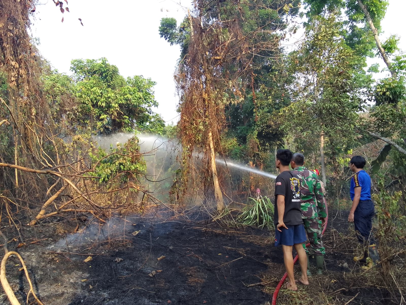 Babinsa Sertu Iman Setiawan menjelaskan Kebakaran dipicu setelah salah satu warga membersihkan lahan dengan cara membakar dan angin kencang sehingga api merembet ke lahan perkebunan warga, Kata Babinsa.