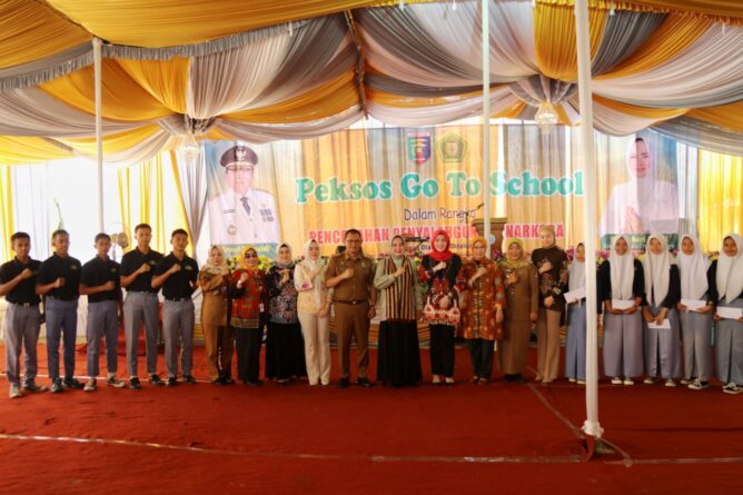 GERBANGPATRIOT.COM – Lampung Utara, Ketua Umum Lembaga Koordinasi Kesejahteraan Sosial (LKKS) Provinsi Lampung Ibu Riana Sari Arinal membuka kegiatan Penyuluhan Pencegahan Penyalahgunaan Narkoba Program Peksos Go To School, di SMK Negeri 2 Kota Bumi, Senin (23/10/2023).