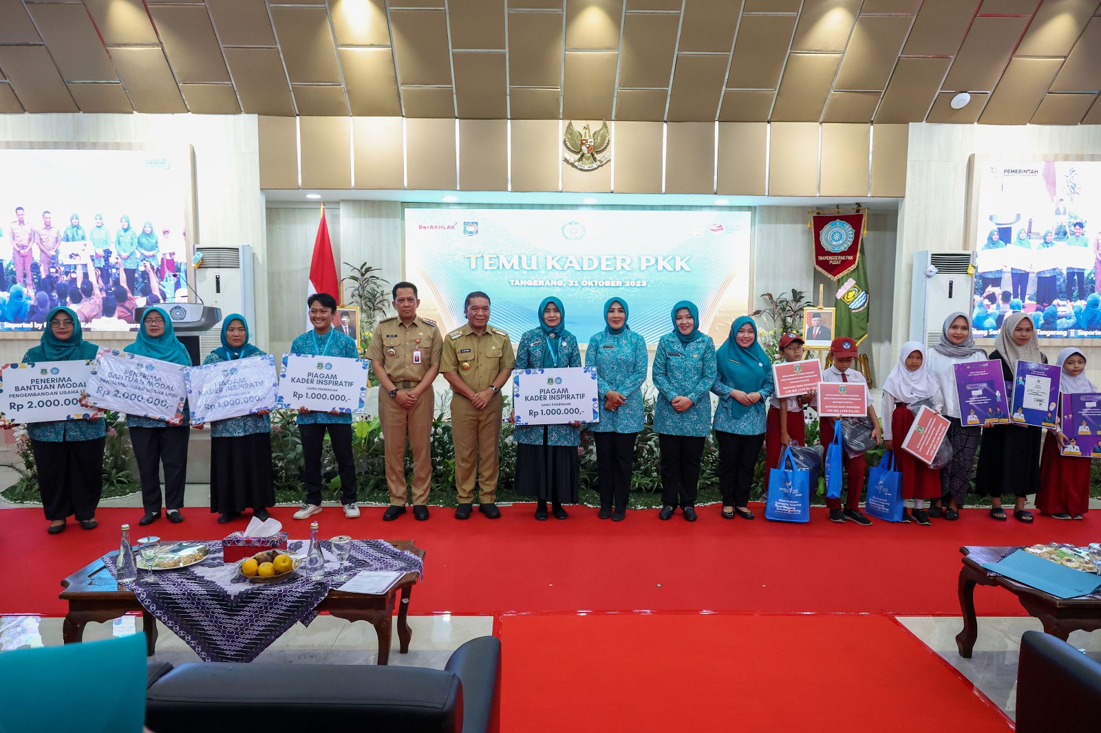 Berbagai bantuan itu diserahkan secara simbolis oleh Ketua Umum TP PKK Ny. Tri Tito Karnavian didampingi oleh Ny.Tine Al Muktabar, Pj Gubernur Banten Al Muktabar serta Pj Bupati Tangerang Andi Ony Prihartono.