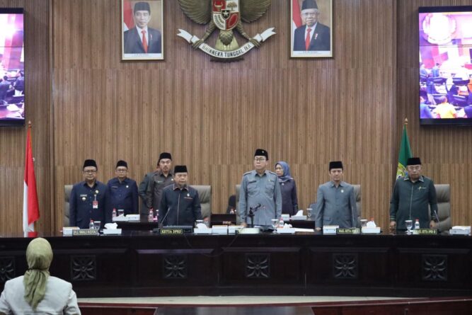 GERBANGPATRIOT.COM – Kota Bekasi, Rapat Paripurna DPRD Kota Bekasi dalam rangka penandatanganan nota kesepakatan kebijakan umum anggaran pendapatan dan belanja daerah (KUA) dan Prioritas plafon anggaran sementara (PPAS) Kota Bekasi tahun anggaran 2024 telah sah di tandatangani. Sabtu,(18/11/23).