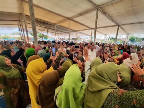 GERBANGPATRIOT.COM – Lampung Selatan, Gubernur Lampung Arinal Djunaidi bersilaturahmi dengan warga Lampung Selatan dalam acara Pengajian Akbar yang digelar di Lapangan Olahraga Sri Tanjung Desa Jati Baru Kecamatan Tanjung Bintang, Senin (20/11/2023).