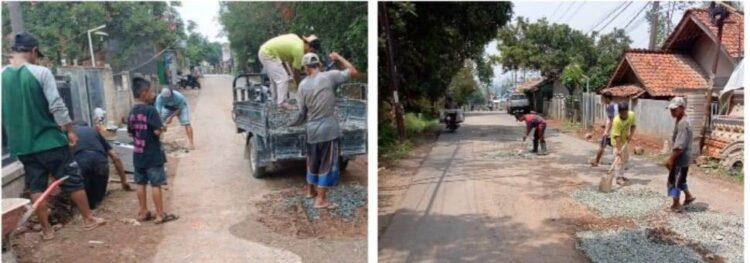 Pemdes Cikaobandung Gotong Royong Perbaiki Jalan Rusak