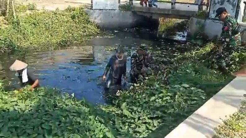 GERBANGPATRIOT.COM – Serang, Memasuki musim penghujan, Koramil 0602-11/Tirtayasa Kodim 0602-11/Tirtayasa Kodim 0602/Serang bersama pemerintah daerah setempat dan masyarakat, melaksanakan kegiatan Karya Bakti (Karbak) secara bergotongroyong membersihkan rumput liar yang menutupi aliran irigasi sungai, bertempat di Desa Cerukcuk Kecamatan Tanara Kabupaten Serang Provinsi Banten, Sabtu (16/12/2023).