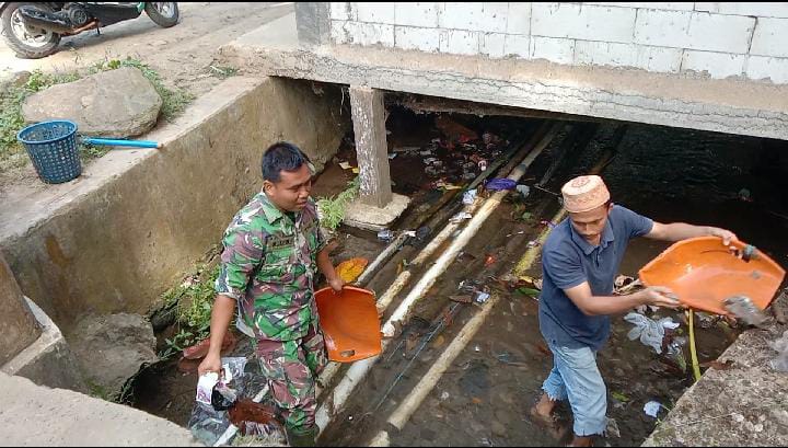 Koramil 0602-12/Ciomas Gelar Karbak Pembersihan Sampah Di Saluran Irigasi Cibanten
