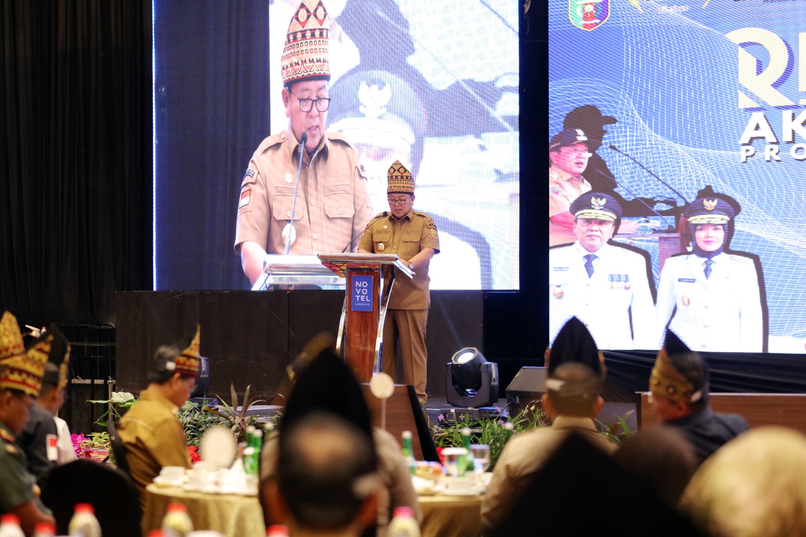 GERBANGPATRIOT.COM – Bandar Lampung, Gubernur Lampung Arinal Djunaidi memaparkan berbagai capaian Pembangunan Provinsi Lampung dalam acara Refleksi Akhir Tahun 2023, yang dilaksanakan di Ballroom Hotel Novotel, Bandarlampung, Senin (18/12/2023).