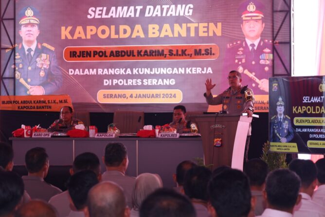 GERBANGPATRIOT.COM – Serang, Kapolda Banten Irjen Pol Abdul Karim didampingi Pejabat Utama Polda Banten melaksanakan kegiatan kunjungan kerja ke Polres Serang pada Kamis (04/01).