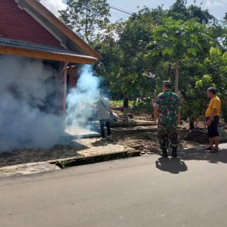 Maraknya Kasus DBD, Koramil 0106/Menes Bersama Petugas Kesehatan, Lakukan Fogging