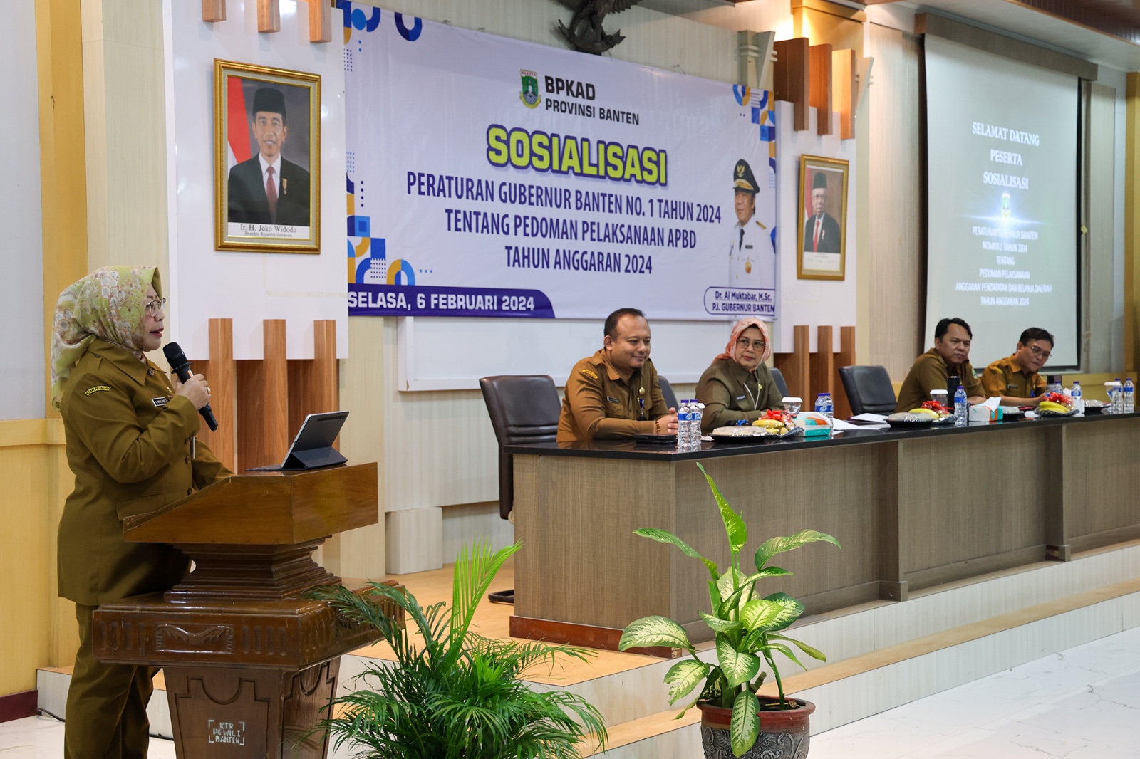Hal itu diungkap Virgojanti saat membuka Sosialisasi Peraturan Gubernur Banten Nomor 1 Tahun 2024 tentang Pedoman Pelaksanaan Anggaran Pendapatan dan Belanja Daerah (APBD) TA 2024 di Aula Lantai 3 Gedung Badan Pengelolaan Keuangan dan Aset Daerah (BPKAD) Provinsi Banten, KP3B, Kota Serang, Selasa (06/02/2024). Kegiatan tersebut memberikan pemahaman terhadap arah kebijakan APBD TA 2024 sesuai Peraturan Menteri Dalam Negeri (Permendagri) Nomor 15 Tahun 2023 tentang Pedoman Penyusunan APBD Tahun Anggaran 2024.