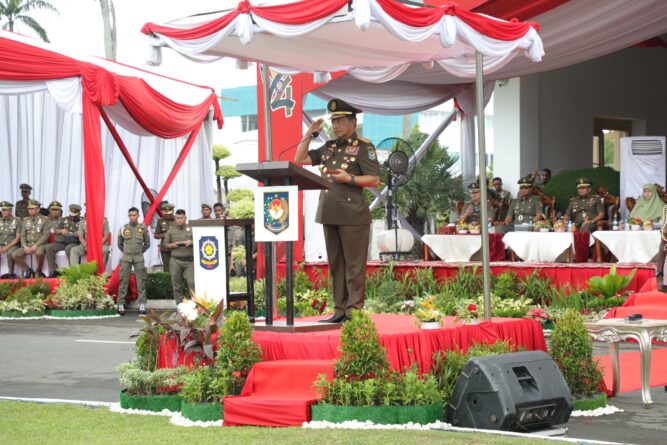 GERBANGPATRIOT.COM – Padang, Menteri Dalam Negeri (Mendagri) Muhammad Tito Karnavian memimpin secara langsung Apel Gelar Pasukan pada peringatan Hari Ulang Tahun (HUT) ke-74 Satuan Polisi Pamong Praja (Satpol PP) dan ke-62 Satuan Perlindungan Masyarakat (Satlinmas). Acara yang dilaksanakan di lapangan Rumah Jabatan Gubernur Sumatera Barat (Sumbar), Kota Padang, ini dihadiri oleh Kepala Satpol PP dari seluruh Indonesia.