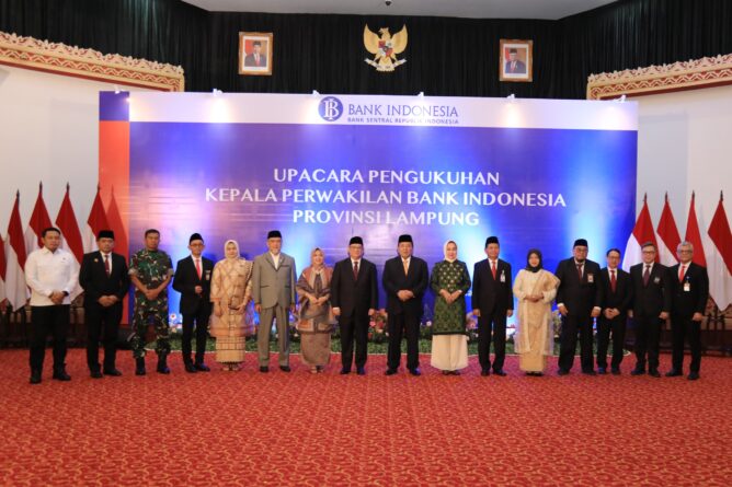 GERBANGPATRIOT.COM – Bandar Lampung, Gubernur Lampung Arinal Djunaidi menghadiri Upacara Pengukuhan Junanto Herdiawan sebagai Kepala Perwakilan Bank Indonesia (BI) Provinsi Lampung oleh Deputi Gubernur Bank Indonesia Doni Primanto Joewono, di Kantor Perwakilan BI Lampung, Jum’at (22/3/2024).