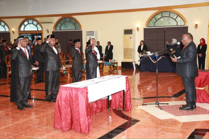 GERBANGPATRIOT.COM – Manokwari, Wakil Menteri Dalam Negeri (Wamendagri) John Wempi Wetipo resmi melantik empat anggota Majelis Rakyat Papua (MRP) Provinsi Papua Barat di Hotel Aston Niu Manokwari, Papua Barat, Sabtu (23/3/2024).