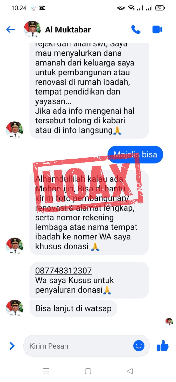 Waspada! Penipuan Nomor Whatsapp 087748312307 Gunakan Foto Profil Pj Gubernur Banten Al Muktabar