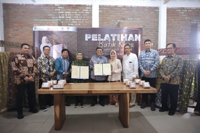 GERBANGPATRIOT.COM – Bandung, Pemerintah Kabupaten Serang melalui Dinas Koperasi UMKM Perindustrian dan Perdagangan (Diskoumperindag) kembali melatih puluhan warga untuk memiliki keahlian membatik. Program yang sudah berjalan tiga tahun ini bekerja sama dengan Rumah Batik Komar, Bandung, Jawa Barat.