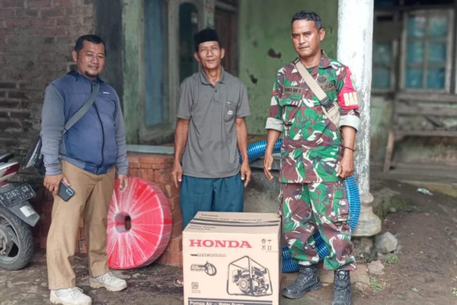 GERBANGPATRIOT.COM – Serang, Mendukung program pemerintah di bidang peningkatan swasembada pangan, Bintara Pembina Desa (Babinsa) Koramil 0602-13/Padarincang Kodim 0602/Serang mendampingi petani, menerima bantuan mesin pompa air untuk meningkatkan hasil panen dari Kementrian Pertanian (Kementan) Republik Indonesia melalui Dinas Pertanian Kabupaten Serang, di wilayah Kecamatan Padarincang Kabupaten Serang Provinsi Banten, Rabu (15/05/2024).