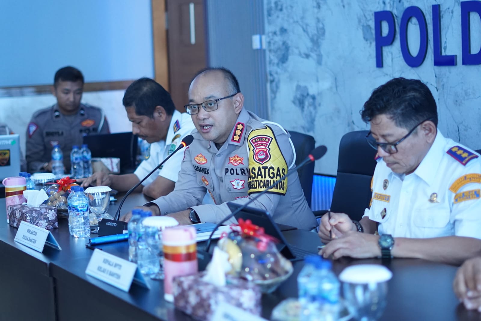 Kegiatan dipimpin oleh Dirlantas Polda Banten Kombes Pol Leganek Mawardi didampingi para personel Ditlantas Polda Banten. Turut dihadiri oleh Kepala BPTD Kelas II Banten, Kepala Dinas Perhubungan Provinsi Banten, Kepala Cabang PT. Jasa Raharja Banten, Ketua Organda Provinsi Banten, Ketua Asosiasi Penguasa Truk Indonesia (Aptrindo) Provinsi Banten, Para Pengusaha PO Bus Provinsi Banten dan undangan lainnya.