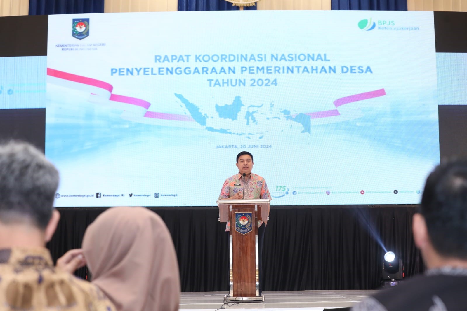 Sebagai informasi, Rakor ini bertujuan untuk menyosialisasikan UU Nomor 3 Tahun 2024 tentang Perubahan Kedua atas UU Nomor 6 Tahun 2014 tentang Desa kepada seluruh Pemda se-Indonesia. Hadir dalam Rakor itu Direktur Jenderal (Dirjen) Bina Pemerintahan Desa (Pemdes) Kemendagri, Direktur Kepesertaan Badan Penyelenggara Jaminan Sosial (BPJS) Ketenagakerjaan, dan pejabat terkait dari sejumlah Kementerian/Lembaga.(Wan)