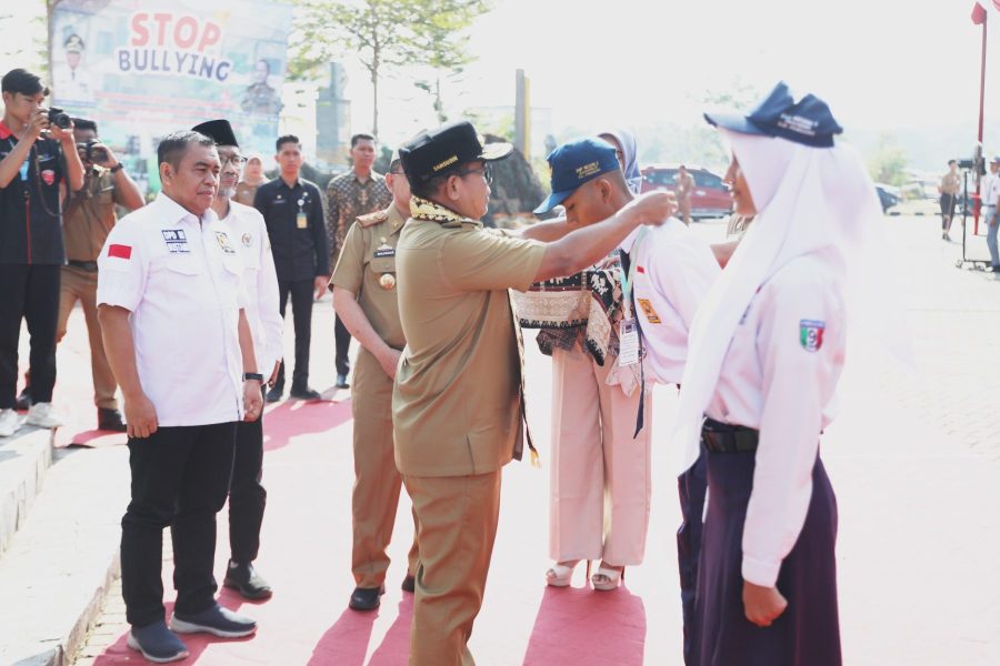 GERBANGPATRIOT.COM, Pringsewu – Pj. Gubernur Lampung Samsudin menjadi Pembina Apel Pembukaan Masa Pengenalan Lingkungan Sekolah (MPLS) Peserta Didik Baru SMA/SMK Negeri/Swasta Se-Provinsi Lampung Tahun Ajaran 2024/2025, di Wisata Bendungan Way Sekampung Kabupaten Pringsewu, Senin (15/7/2024).