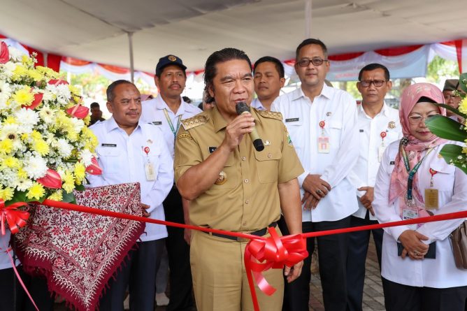 GERBANGPATRIOT.COM, Serang – Penjabat (Pj) Gubernur Banten Al Muktabar membuka Bazar Pasar Murah Musabaqah Tilawatil Quran (MTQ) XXI Provinsi Banten Tahun 2024 di Lapangan Pancaniti, KP3B, Curug Kota Serang, Rabu (24/7/2024). Pemerintah Provinsi Banten melalui Dinas Perindustrian dan Perdagangan menghadirkan berbagai produk mulai dari kebutuhan pokok, sayuran, buah, makanan kuliner, hingga kerajinan wastra Banten.