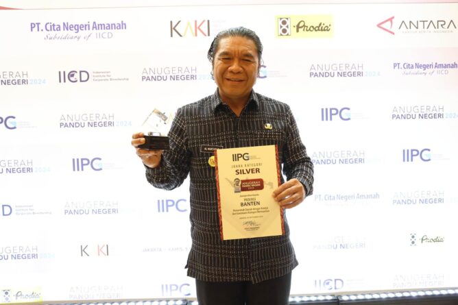GERBANGPATRIOT.COM, Serang – Pemerintah Provinsi (Pemprov) Banten meraih penghargaan Anugerah Pandu Negeri 2024 untuk Kategori Silver sebagai Pemerintah Daerah dengan Kinerja dan Governansi Memuaskan Tingkat Provinsi, penghargaan tersebut diberikan oleh Indonesian Institute for Public Governance (IIPG) kepada Penjabat Gubernur Banten Al Muktabar di Hotel Aryaduta Menteng, Jakarta, Kamis (5/9/2024).
