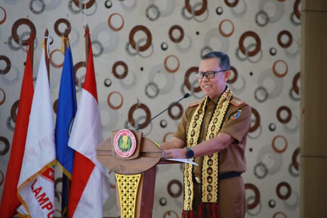 GERBANGPATRIOT.COM, Bandar Lampung – Pj. Gubernur Lampung Samsudin mengajak para pengurus PGRI Provinsi Lampung untuk menghadirkan inovasi dan kreativitas serta mendarmabaktikan diri untuk kemajuan dunia pendidikan.