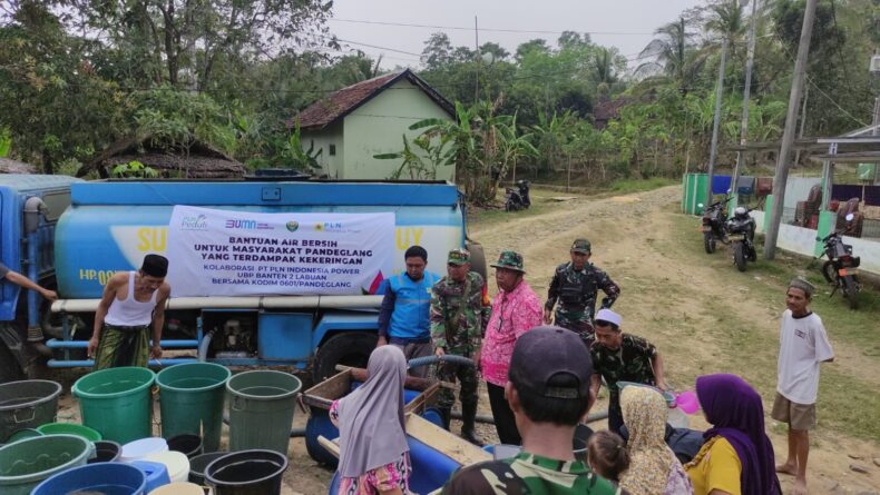 GERBANGPATRIOT.COM, Pandeglang – Bentuk kepedulian Kodim 0601/Pandeglang yang berkolaborasi dengan PT PLN Indonesia Power Banten 2 Labuan PGU (Power Generation Unit) atau PLTU Banten 2 Labuan membantu masyarakat yang mengalami kekeringan akibat kemarau panjang, melaksanakan kegiatan Bakti sosial pendistribusian air bersih diwilayah kecamatan Patia kabupaten Pandeglang Banten, Selasa (24/09/2024)