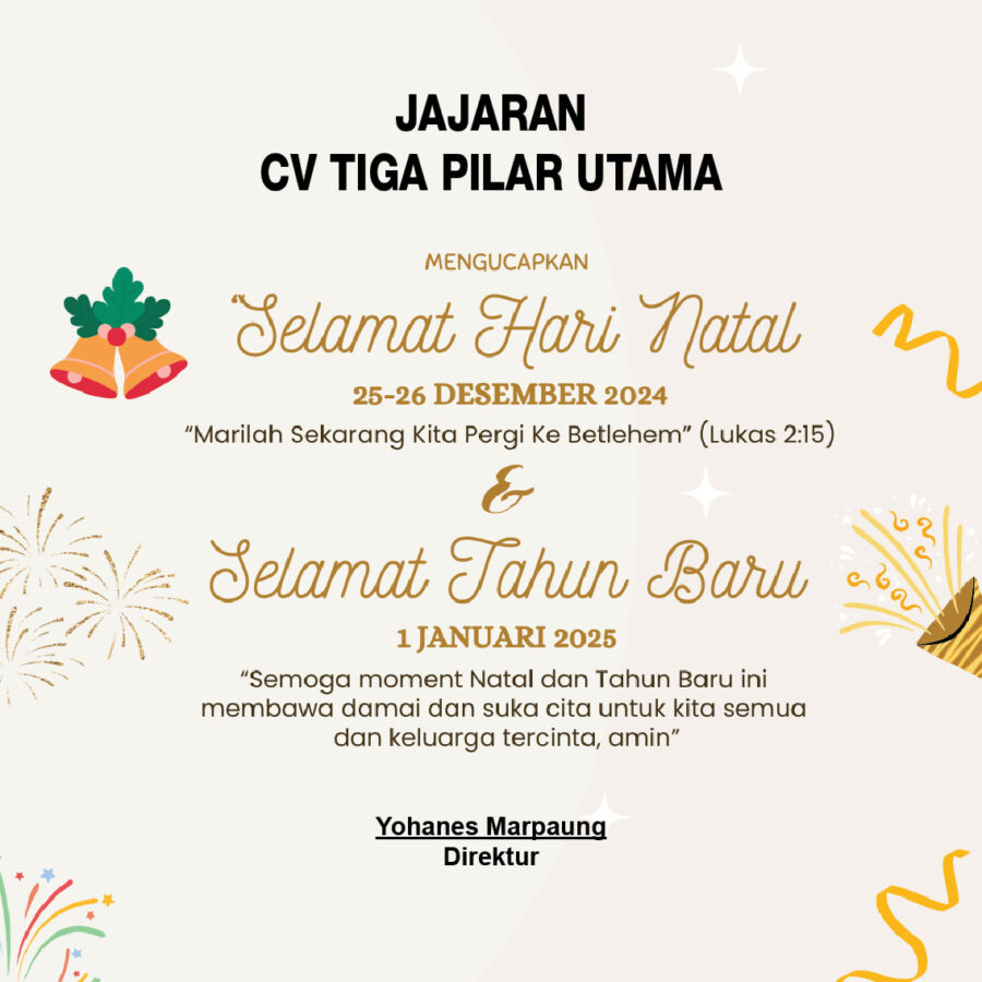 Iklan Jajaran CV Tiga Pilar Utama Mengucapkan Selamat Natal dan Tahun Baru 2025 21 Desember 2024 | 19:08 WIB21 Desember 2024 | 19:09 WIB Admin