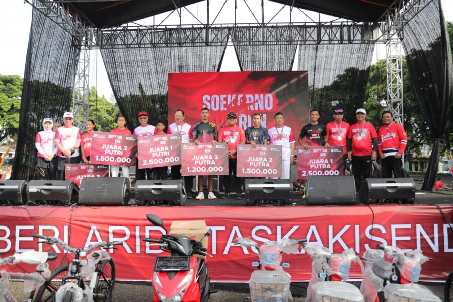 GERBANGPATRIOT.COM, Bandar Lampung – Pj. Gubernur Lampung Samsudin bersama Gubernur Lampung terpilih Rahmat Mirzani Djausal ikut memeriahkan Soekarno Fun Run di Lapangan Saburai Enggal Bandarlampung, Minggu (26/1/2025).