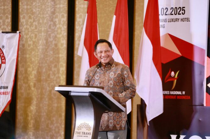 GERBANGPATRIOT.COM, Bandung – Menteri Dalam Negeri (Mendagri) Muhammad Tito Karnavian berharap, para advokat dapat menjunjung tinggi profesionalisme dengan memahami berbagai peran yang diemban. Menurutnya, Undang-Undang (UU) Nomor 18 Tahun 2003 tentang Advokat merupakan bentuk pengakuan terhadap profesi tersebut.