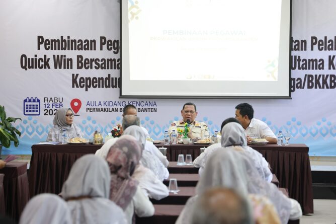 Hal itu dikatakan A Damenta usai membuka Pembinaan Pegawai dan Penguatan Pelaksanaan Quick Win bersama jajaran Kementerian Kependudukan dan Pembangunan Keluarga/BKKBN Wilayah Provinsi Banten di Aula Kidang Kencana Kantor Perwakilan BKKBN Provinsi Banten, Rabu, (12/2/2025).