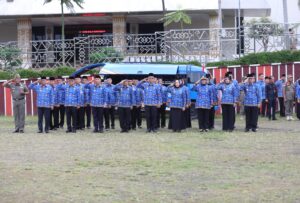 GERBANGPATRIOT.COM, BANDARLAMPUNG – Pj. Gubernur Lampung Samsudin memimpin Upacara Bulanan di Lingkungan Pemerintah Provinsi Lampung, di Lapangan Korpri, Komplek Kantor Gubernur, Bandar Lampung, Senin (17/2/2025).