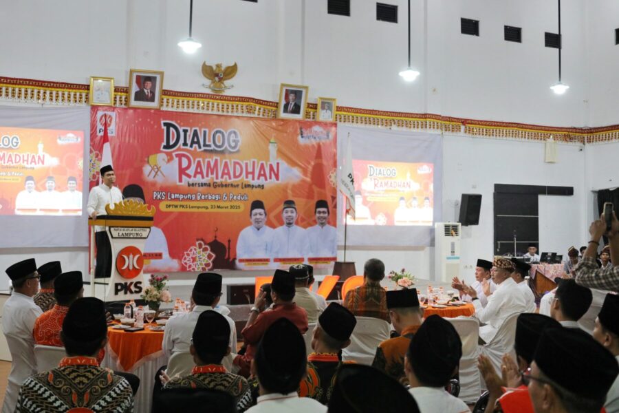 GERBANGPATRIOT.COM, Bandar Lampung – Gubernur Lampung Rahmat Mirzani Djausal, menghadiri acara buka puasa bersama yang diselenggarakan oleh Dewan Pengurus Wilayah Partai Keadilan Sejahtera (DPW PKS) Provinsi Lampung, di Gedung Serba Guna (GSG) DPW PKS Provinsi Lampung, Bandarlampung, Minggu (23/03/2025).