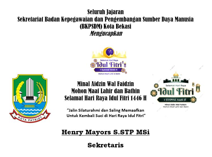 - Seluruh Jajaran Bidang Peternakan dan Kesehatan Hewan (Nakeswan) Dinas Ketapang dan Pertanian Kota Bekasi Mengucapkan Minal Aidzin Wal Faidzin Mohon Maaf Lahir dan Bathin Selamat Hari Raya Idul Fitri 1446 H