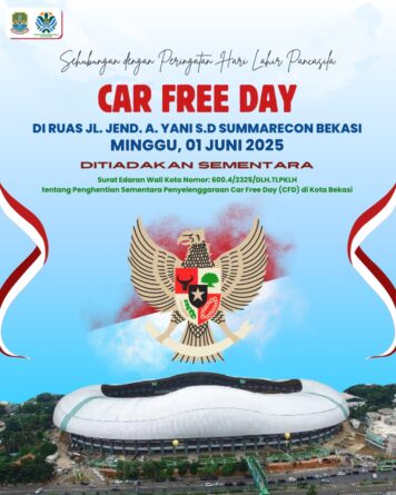 Kegiatan Car Free Day di ruas Jalan Jenderal Ahmad Yani sampai dengan Summarecon Bekasi akan kembali dilaksanakan secara normal pada hari Minggu, 8 Juni 2025. Sesuai Surat Edaran Wali Kota Bekasi Nomor: 600.4/2325/DLH.TLPKLH tentang Penghentian Sementara Penyelenggaraan Car Free Day di Kota Bekasi.(Nad)