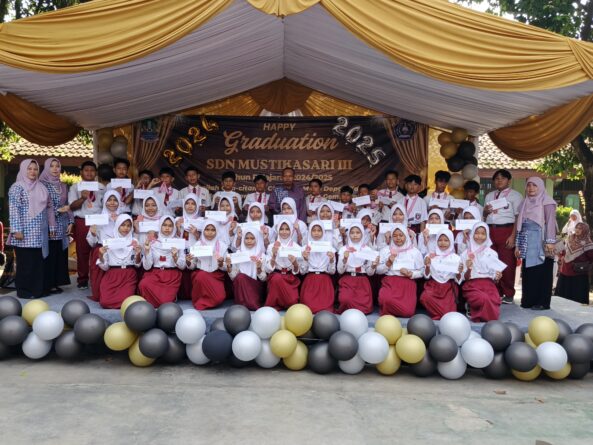 GERBANGPATRIOT.COM, Kota Bekasi, 2 Juni 2025 — SDN 03 Mustikasari Kota Bekasi, menggelar kegiatan perpisahan kelulusan bagi siswa-siswi kelas VI tahun ajaran 2024/2025. Kegiatan ini dilaksanakan di gedung SDN 03 Mustikasari, yang beralamat di Jl. Caringin, RT.005/RW.001, Kelurahan Mustikasari, Kecamatan Mustika Jaya, Kota Bekasi. Acara yang berlangsung meriah dan penuh haru ini dihadiri oleh seluruh siswa, guru, serta para orang tua murid. Momen tersebut menjadi ajang untuk memberikan apresiasi dan ucapan selamat kepada siswa-siswi yang telah menyelesaikan pendidikan dasar mereka dengan baik.