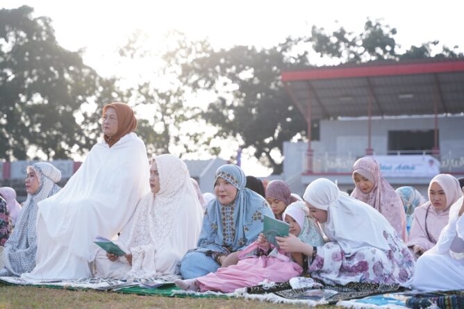GERBANGPATRIOT.COM, Bandar Lampung – Walikota Bandar Lampung, Eva Dwiana bersama Forkopimda Kota Bandar Lampung melaksanakan sholat Idul Adha di Stadion Mini Way Dadi Kecamatan Sukarame, Jumat (06/06/2025).