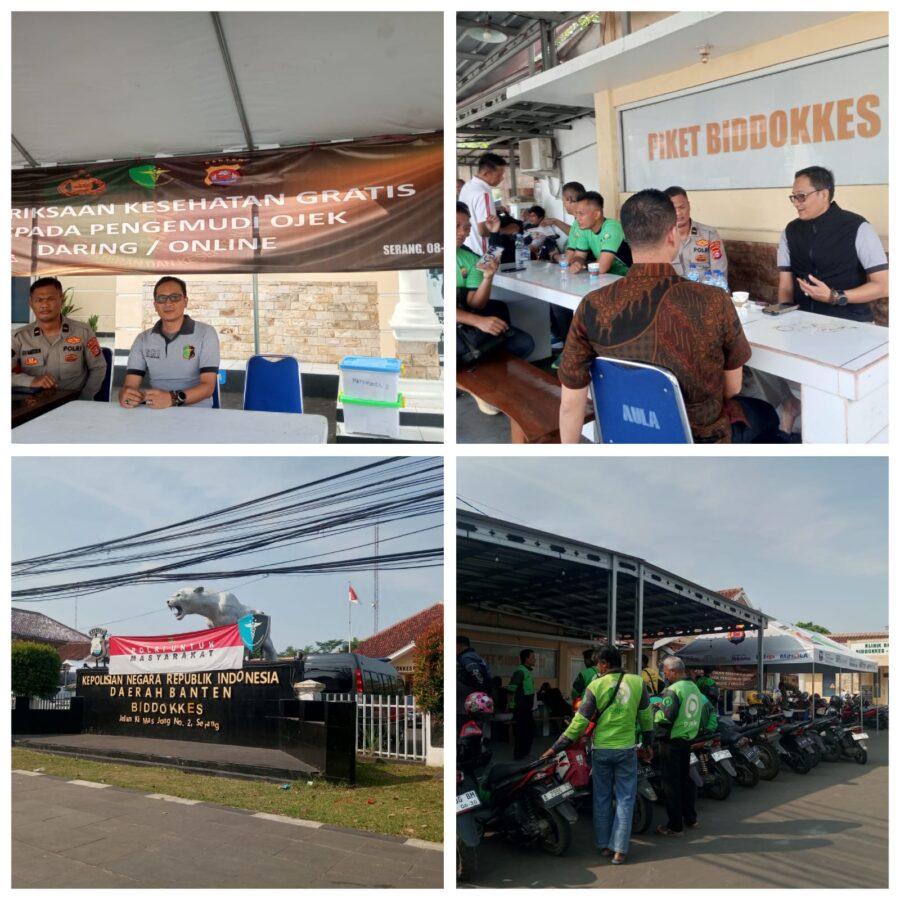 GERBANGPATRIOT.COM, Kota Serang – Dalam rangka memperingati Hari Ulang Tahun (HUT) Bhayangkara ke-79, Bidang Kedokteran dan Kesehatan (Bidokkes) Polda Banten bekerjasama dengan Dirkrimsus dan Dinkes Provinsi Banten melaksanakan kegiatan bakti kesehatan bagi masyarakat, khususnya para pengemudi ojek online (ojol) sebagai bentuk kepedulian Polri terhadap kesehatan masyarakat.