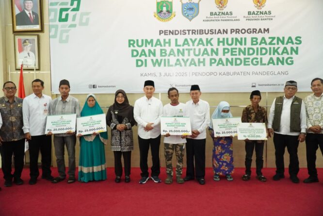 “Ini adalah bukti nyata bahwa sinergi dan silaturahmi baik di tingkat provinsi maupun kabupaten, Baznas dapat membawa manfaat langsung kepada masyarakat,” demikian disampaikan Bupati Pandeglang saat pemberian bantuan RLHB dan bantuan pendidikan. program Baznas di Pendopo, Kamis (3/7/2025)