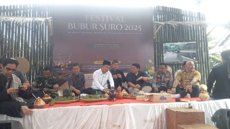 GERBANGPATRIOT.COM, Pandeglang – Desa Bandung Kecamatan Banjar menggelar festival bubur suro 10 muharam 1447 atau 2025. Kegiatan ini diapresiasi Wakil Bupati Pandeglang Iing Andri, sebab menurutnya kegiatan festival bubur suro adalah tradisi budaya yang dibalut dengan do’a untuk melestarikan kearifan lokal.