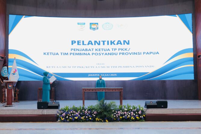 GERBANGPATRIOT.COM, Jakarta – Ketua Umum (Ketum) Tim Penggerak Pemberdayaan dan Kesejahteraan Keluarga (TP PKK) sekaligus Ketum Tim Pembina Pos Pelayanan Terpadu (Posyandu) Tri Tito Karnavian melantik Tyas Fatoni sebagai Penjabat (Pj.) Ketua TP PKK dan Ketua Tim Pembina Posyandu Provinsi Papua. Pelantikan berlangsung di Gedung Sasana Bhakti Praja, Kantor Pusat Kementerian Dalam Negeri (Kemendagri), Jakarta, Senin (14/7/2025).