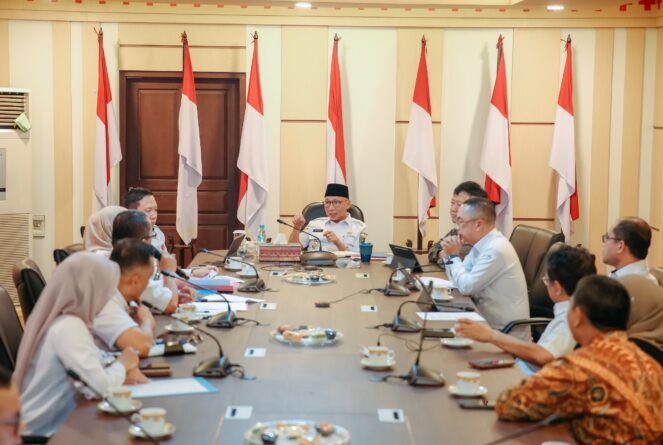 GERBANGPATRIOT.COM, Bandar Lampung – Gubernur Lampung Rahmat Mirzani Djausal membahas percepatan migrasi perizinan usaha penangkapan ikan bersama Direktorat Jenderal Perikanan Tangkap Kementerian Kelautan dan Perikanan (KKP) Republik Indonesia di Ruang Rapat Sakai Sambayan, Kompleks Kantor Gubernur, Bandarlampung, Selasa (23/7/2025).