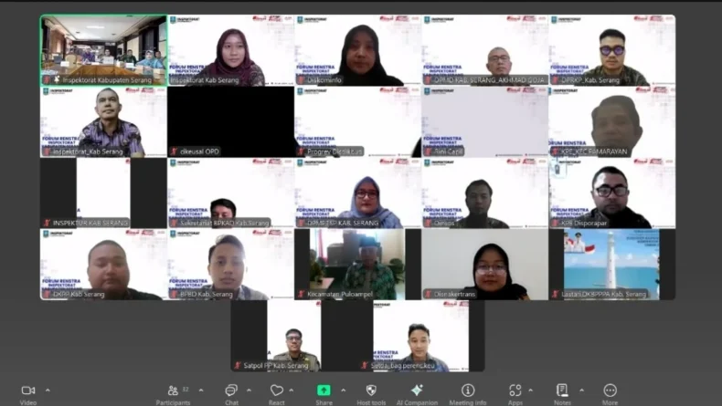 GERBANGPATRIOT.COM, Serang — Inspektorat Kabupaten Serang menyelenggarakan Forum Rencana Strategis (Renstra) untuk periode 2025–2029 secara luring dan daring melalui aplikasi Zoom Meeting. Kegiatan ini menjadi bagian dari upaya perencanaan strategis untuk meningkatkan kinerja pengawasan pemerintahan daerah ke depan.